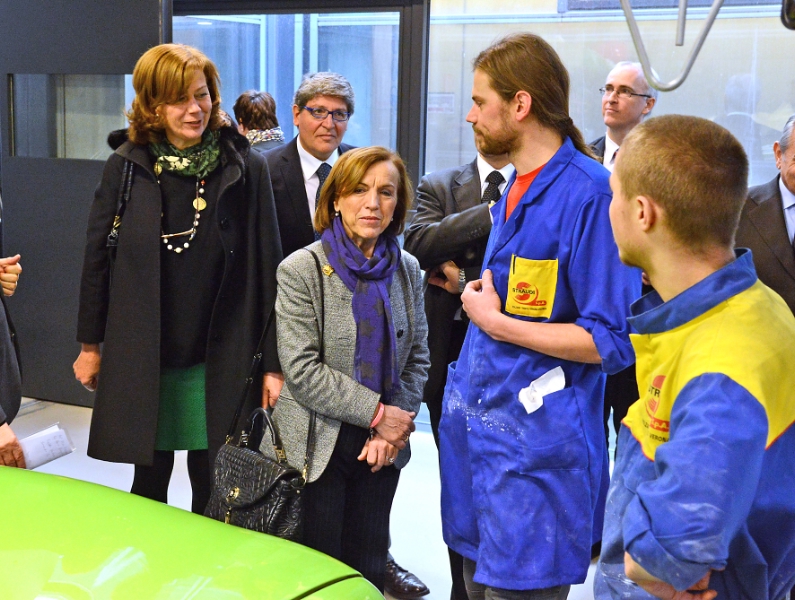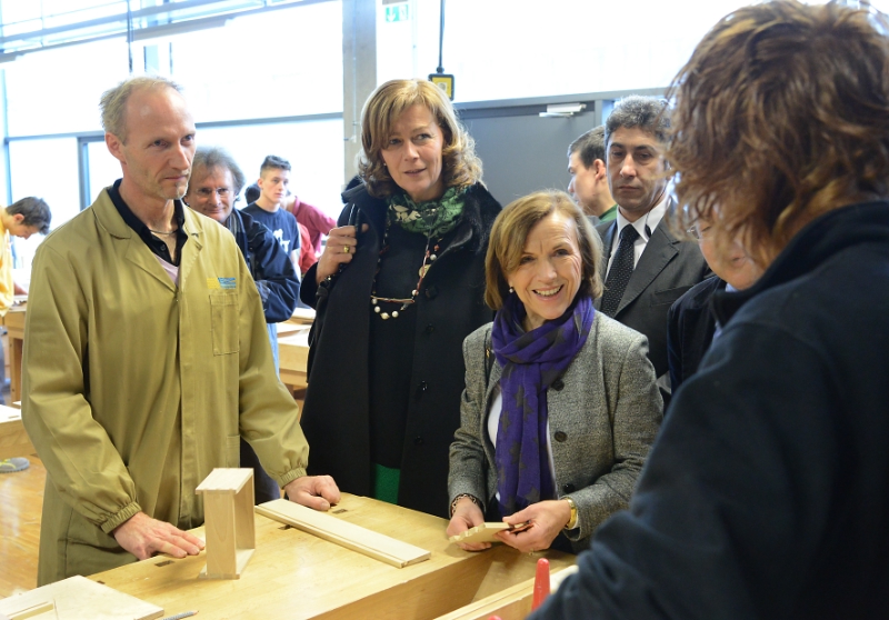 Nel corso della visita alle officine della scuola professionale di via Roma l'assessore Kasslatter Mur, che in Giunta provinciale ha la delega sull'apprendistato, ha accennato al ministro Fornero le questioni ancora aperte in materia di profili professionali e apprendistato stagionale, auspicando che le norme statali non limitino un sistema collaudato e che funziona bene. Il ministro Fornero ha assicurato il suo impegno a rimuovere eventuali impedimenti e a considerare le particolarità dell'Alto Adige.