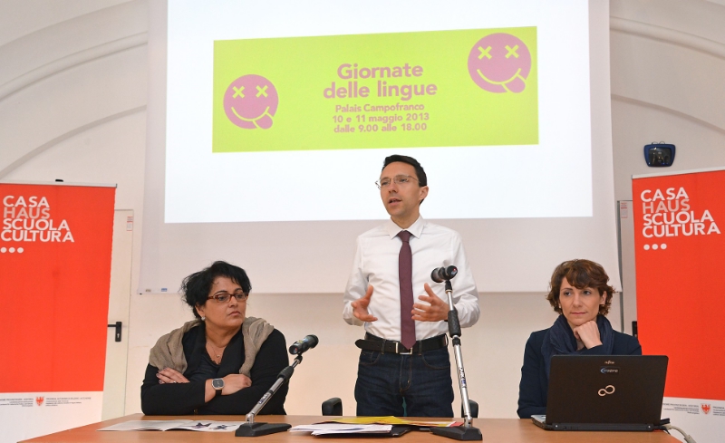 Un vero e proprio festival del plurilinguismo fra Palais Campofranco e Centro Trevi a Bolzano: è la prima edizione delle "Giornate delle lingue", in programma venerdì 10 e sabato 11 maggio, aperta a tutti su iniziativa dell'Assessorato provinciale alla scuola e cultura italiana. L'evento è stato presentato oggi (2 maggio) dall'assessore Christian Tommasini.
