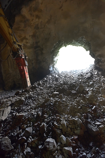 Abbattuto oggi l'ultimo diaframma della 2a galleria della strada della Val Sarentino