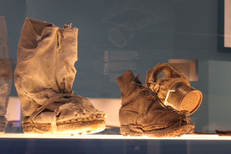 Reperti dell'esercito austro-ungarico e italiano risalenti alla Prima Guerra Mondiale ci parlano delle dure condizioni di vita dei soldati sul fronte dell'Ortles. Scarpe, sovrascarpe, calze, guanti, maschera antigas, scatole di conserva e rotoli di carta per cucinare mostrano cosa significasse riuscire a sopravvivere difendendo in più i rispettivi confini.
