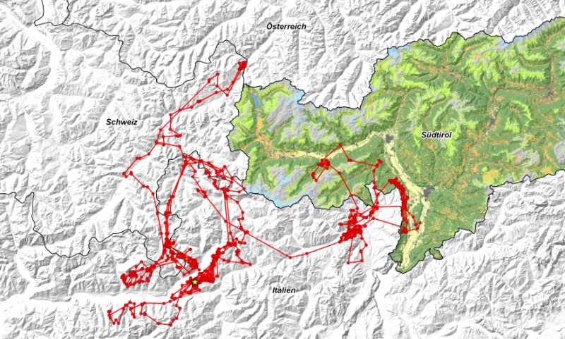 Già a inizio gennaio di un anno fa nella zona dell'Oltradige erano state osservate tracce di plantigrado nella neve, successivamente l'animale era stato dotato di radiocollare e rimesso in libertà. Si tratta di M25, un maschio di due anni e 125 kg di peso, che nel 2014 aveva percorso un tragitto notevole, dalla Mendola a Bresimo in Trentino, poi in Venosta, val d'Ultimo e fino a Rumo. In estate è passato in Svizzera, ora si trova in Lombardia.