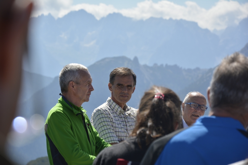 Erwin Steiner spiega le montagne osservabili dalla nuova terrazza panoramica