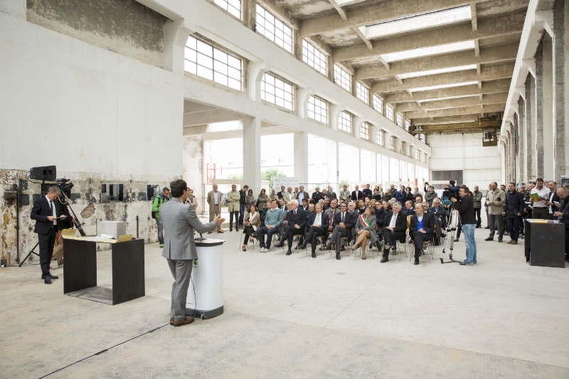 Teatro della cerimonia è stato il cantiere in via Volta a Bolzano sud nel quale sono in corso i lavori del NOI Techpark, committente la BLS (Business Location Südtirol-Alto Adige). I lavoro sono partiti puntuali nel marzo scorso e riguardano il completamento del lotto 2, che comprende il risanamento del primo corpo centrale (lo storico fabbricato dell'ex Alumix), della mensa e la costruzione del nuovo blocco (il monolite nero) e di un garage interrato, come ha spiegato il direttore di BLS Ulrich Stofner. È pronto a partire anche il lotto 3 con il risanamento del secondo edificio centrale e la sistemazione esterna dell'intero areale.