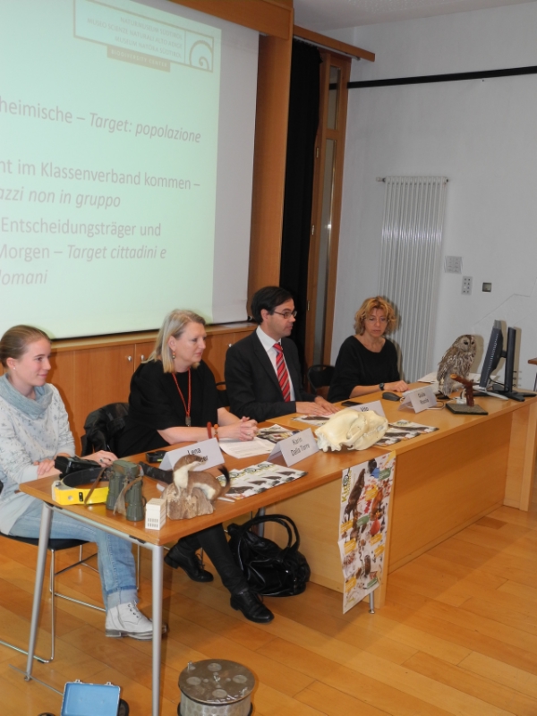 Il ciclo Kidscience 2015 è stato presentato oggi, mercoledì 21 ottobre, al museo da Karin Dalla Torre, direttrice della Ripartizione provinciale Musei e dell'Azienda "Musei provinciali", dal direttore del museo Vito Zingerle, da Giulia Rasola, coordinatrice di Kidscience e da una delle esperte coinvolte nel progetto, Lena Schober, collaboratrice dell'Ufficio provinciale Caccia e pesca e ranger del Parco Nazionale Alti Tauri.
