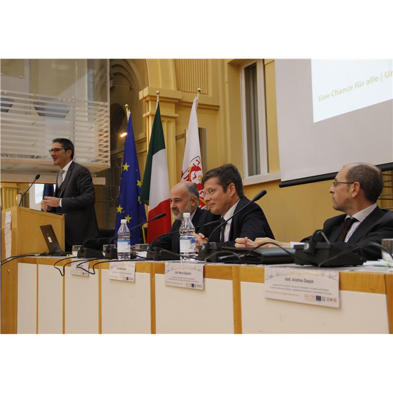 Il Fondo sociale europeo è il principale strumento dell’UE per sostenere l’occupazione e ha una dotazione di 80 miliardi di euro da investire nei cittadini e da ripartire nei Programmi operativi 2014-2020 dei vari Paesi membri. Gli obiettivi del nuovo periodo di finanziamento dei progetti in Alto Adige riguardano in particolare il mantenimento dell’alta percentuale di occupazione, l’aumento dell’occupazione femminile, il sostegno all’inclusione contro l’emarginazione, il rafforzamento dell’istruzione. Dopo che a luglio la Commissione europea ha dato via libera al Programma operativo del Fondo sociale europeo 2014-2020 della Provincia di Bolzano, è scattata a Bolzano la fase attuativa: Palazzo Widmann ha ospitato l'evento di lancio con la presentazione del nuovo Programma operativo, una tavola rotonda con i rappresentanti di UE, Governo italiano e Provincia e l'intervento del presidente Arno Kompatscher. Kompatscher ha ricordato che questo complesso sistema di finanziamento "negli ultimi anni ha condotto purtroppo anche a problemi e difficoltà alla cui soluzione stiamo lavorando con impegno. E siamo arrivati a un buon punto sulla strada della chiusura del periodo di programma." Il Presidente ha aggiunto che il nuovo Programma FSE per l’Alto Adige "aiuterà uno sviluppo positivo del mercato del lavoro, il sostegno del sistema sociale e la promozione del sistema dell’istruzione."