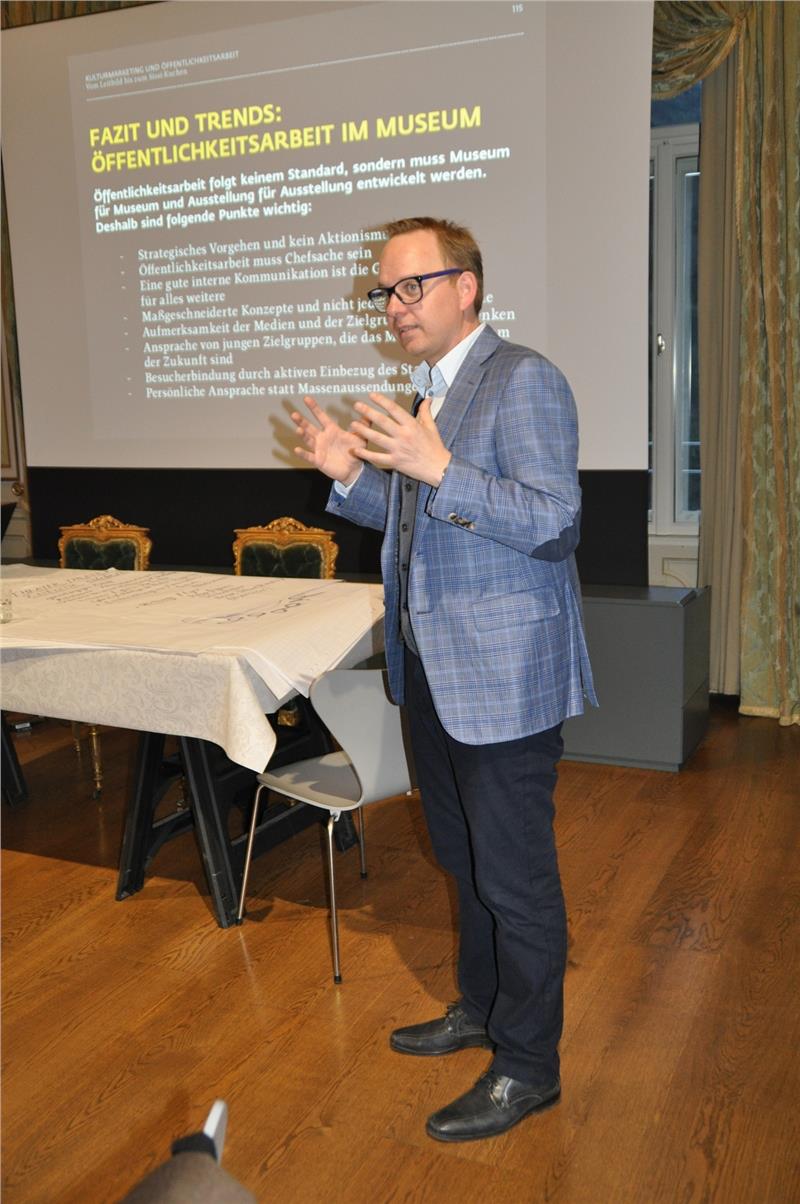 È stata poi la volta di Uli Prugger e Alfons Demetz che hanno mostrato, sulla scorta di esempi pratici, come arrivare a stabilire un corporate design con un logo, e quanto questo possa divenire un “marchio” forte, di aiuto anche nell’attività di pr. Non esiste una ricetta valida sempre, hanno spiegato: ogni museo e ogni mostra vanno considerati individualmente. In ogni caso, vale la regola aurea del “meno è meglio” ed è sempre necessario confrontarsi con ciò che si prefigge il museo, per il quale un’attenta riflessione sui propri obiettivi e una loro chiara formulazione sono di fondamentale importanza. Il corso è proseguito il pomeriggio con una visita guidata al Touriseum con il direttore reggente Patrick Gasser e la collaboratrice scientifica Evelyn Reso, che hanno illustrato gli elementi centrali dell’allestimento e della sua comunicazione. In chiusura, i partecipanti si sono cimentati nell’elaborazione concreta di un concetto di comunicazione.