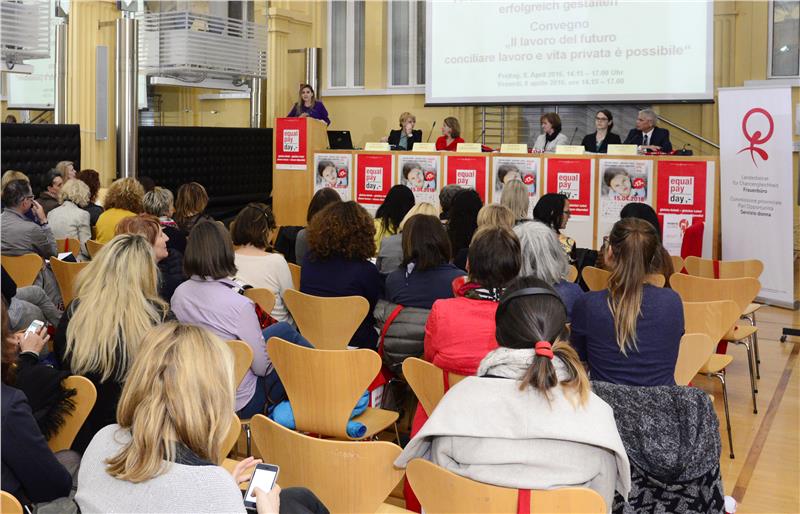 Le trasformazioni radicali in atto nel mercato del lavoro e le richieste di maggiore flessibilità e di una nuova cultura aziendale sono al centro del convegno “Il Lavoro del futuro - conciliare lavoro e vita privata è possibile". I lavori sono stati avviati nel pomeriggio di oggi, 8 aprile, a Palazzo Widmann, dall’assessora provinciale alle pari opportunità per le donne, Martha Stocker ha affermato che sarebbe bello poter far meno dell'Equal Pay Day, perché significherebbe aver raggiunto la parità di retribuzione. Nel suo breve intervento, perché impegnata in Consiglio provinciale nella trattazione di importanti disegni di legge, ha sottolineato come il mondo del lavoro sia in evoluzione e come anche la combinazione lavoro e impegno di cura si modificheranno. Ha ricordato, inoltre, le differenze d'impostrazione nei confronti del lavoro da parte delle generazioni e di come oggi sempre più emergano nuove esigenze di una migliore conciliabilità del lavoro con i vari aspetti della vita privata. Infine ha espresso sentiti ringraziamenti alle 63 associazioni che partecipano alla Giornata d'azione dell'Equal Pay Day.