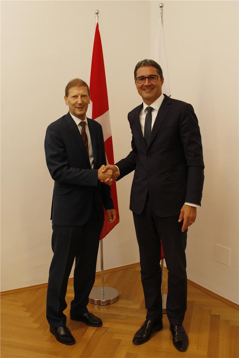 Per quanto riguarda la cooperazione in campo economico, Kompatscher e Kessler intravvedono buono potenzialità di sviluppo. L'ambasciatore, che oggi ha visitato gli uffici della nuova società IDM, ha affermato di voler approfondire il tema. Il presidente della Giunta ha indicato la Svizzera come un mercato chiave per il turismo, ed ha anche individuato nell'innovazione, nelle tecnologie alpine e nel traffico possibili settori in cui incrementare la collaborazione. "Come regioni alpine confinanti - ha detto Kompatscher - abbiamo molto in comune e possiamo sostenerci reciprocamente". Questo vale ad esempio anche per il settore dei trasporti: in Svizzera, ad esempio, il tunnel del San Gottardo è stato reso operativo con successo, mentre in Alto Adige si sta attualmente ancora lavorando alla realizzazione del tunnel di base del Brennero. A questo riguardo il presidente ha informato Kessler sullo stato di avanzamento dei lavori. Durante l'incontro si è anche parlato del traffico transfrontaliero tra la Svizzera e la Provincia di Bolzano. Kompatscher e Kessler si sono trovati d'accordo sul fatto che il collegamento ferroviario tra Val Venosta e Engadina potrebbe costituire un'opportunità per lo sviluppo di entrambi. In questo contesto si è anche parlato del materiale rotabile "silenzioso" il cui utilizzo in Svizzera dal 2020 diventerà obbligatorio. Kompatscher lo ha definito un buon provvedimento, augurandosi che su questo punto l'Italia non resti indietro. Per quanto riguarda i lavoratori transfrontalieri, è stato specificato, l'Italia applicherà la tassazione prevista dagli accordi bilaterali.