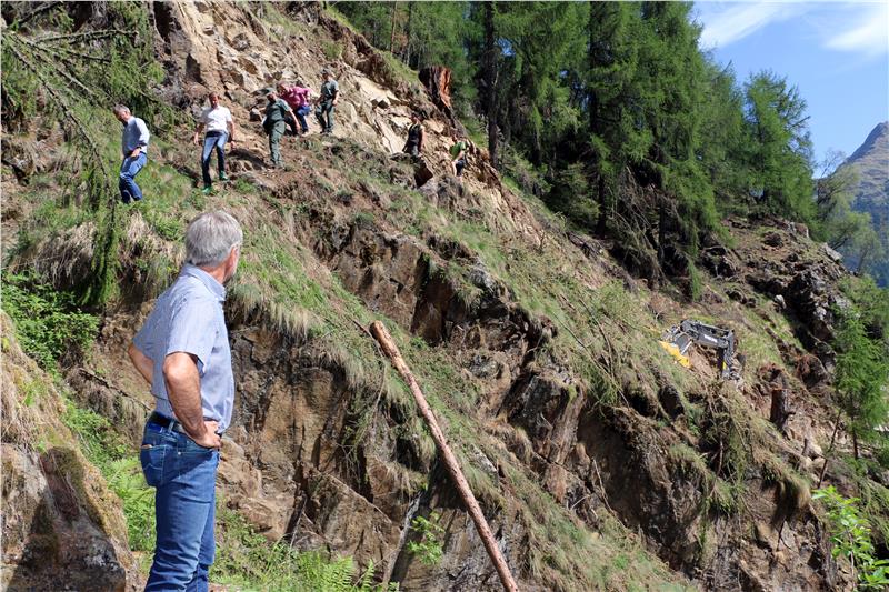 Il maso Saxalb a Certosa in val Senales, finora raggiungibile solo a piedi, sarà collegato con una strada: sopralluogo ai lavori dell'assessore Arnold Schuler.