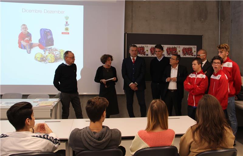 Ha per protagonisti i volti sorridenti degli Yankees Bolzano il calendario "solidale" realizzato dalla terza classe indirizzo "operatore grafico" presentato questa mattina (5 dicembre) nei laboratori della Scuola professionale Einaudi di via Santa Geltrude a Bolzano. "Un progetto di grande significato - ha detto Renzo Roncat, direttore dell’area formazione professionale della Provincia - che ha visto impegnati i nostri ragazzi e i docenti assieme ai giovani giocatori e alle loro famiglie". La squadra di calcio Yankees Bolzano è composta da ragazzini diversamente abili ed è una delle 24 formazioni della Virtus Bolzano. Il progetto, coordinato dal docente Walter Dorigatti, è stato realizzato in collaborazione con l’associazione "Il Sorriso". "L’idea di realizzare un calendario con un fine nobile – ha detto la direttrice sostituta Monica Apolloni - ha subito entusiasmato i ragazzi della classe ed i loro insegnanti dell’area tecnico professionale che hanno lavorato anche al di fuori dell’orario scolastico".