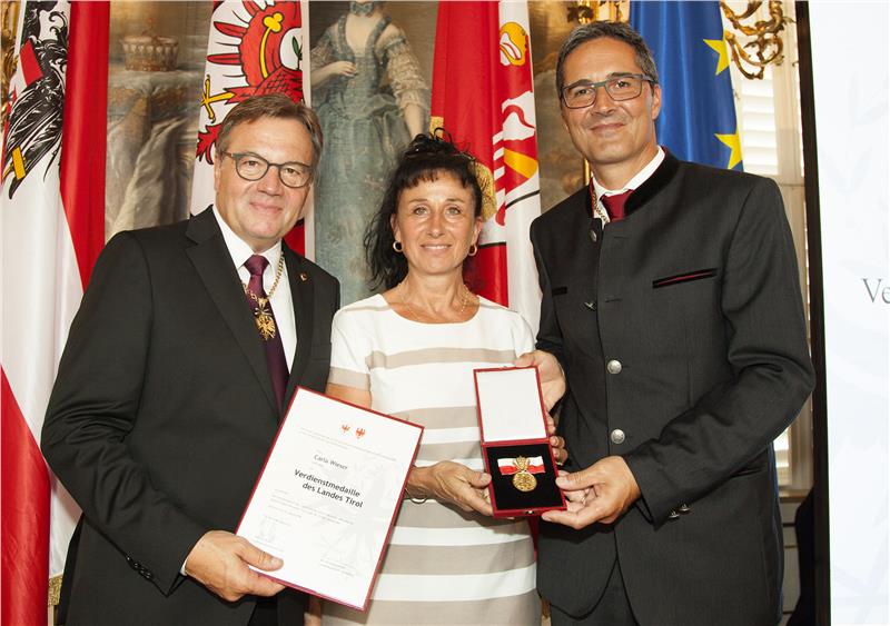 Sono 27 gli altoatesini, di età compresa fra i 57 e gli 82 anni, provenienti da tutte le zone della Provincia e in rappresentanza dei diversi gruppi linguistici e dei diversi settori, che hanno ricevuto oggi (15 agosto) a Innsbruck le onorificenze del Tirolo. A consegnarle i due presidenti del Land Tirolo e della Provincia di Bolzano, Günther Platter e Arno Kompatscher. Questa volta è stato il turno delle medaglie al merito, mentre le croci al merito e gli attestati di merito per azioni di salvataggio saranno consegnati il 9 settembre a Castel Tirolo. "Questa onorificenza - ha sottolineato Kompatscher - vuole essere il riconoscimento per l'impegno di tante persone, nei settori più diversi, a favore della società. La solidarietà e il sostegno reciproco rappresentano i valori fondanti e il vero collante delle nostre comunità, queste medaglie rappresentano un grazie per tutti coloro che, da entrambi i lati del Brennero, si mettono a disposizione del volontariato con passione e impegno a favore del prossimo, delle tradizioni e della cultura".