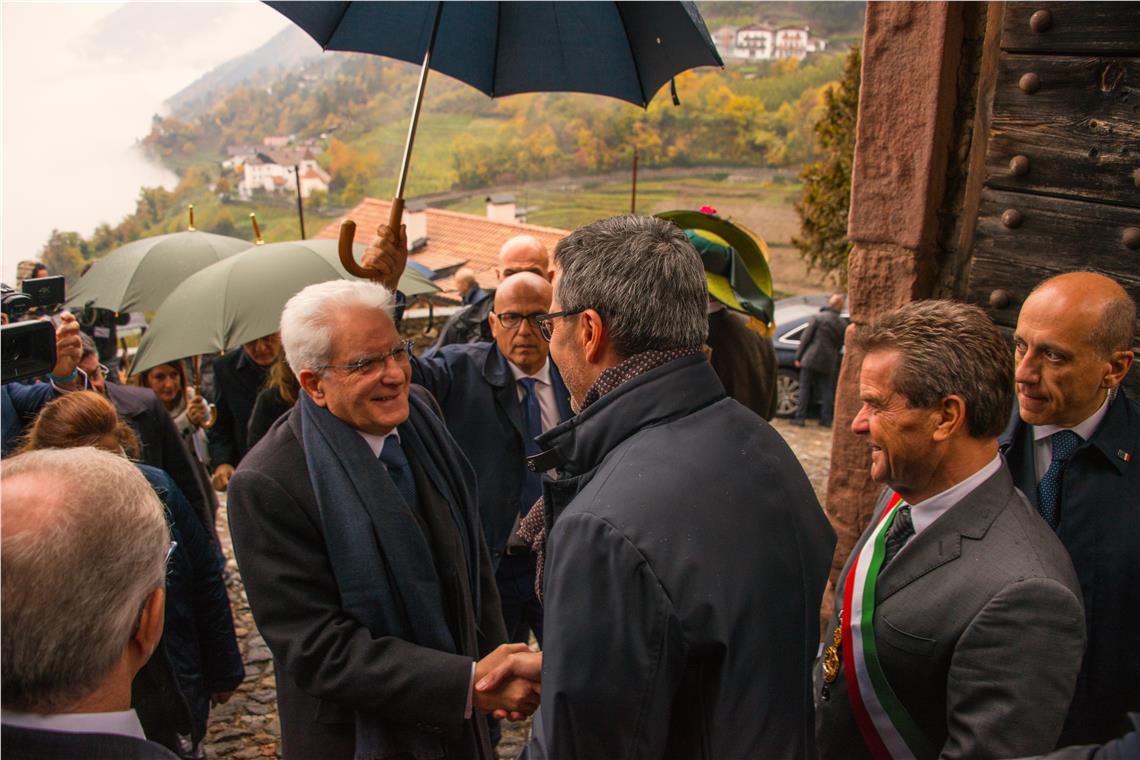 Accogliendo i presidenti Mattarella e Van der Bellen a Castel Tirolo, il presidente Arno Kompatscher ha parlato di pacifica convivenza e di dialogo basato sul rispetto reciproco.