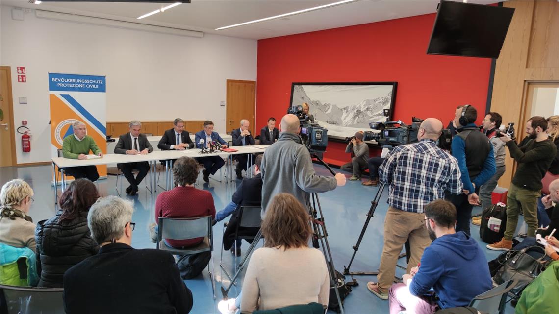 Alle 13 di oggi (24 febbraio) si è riunito presso la sede dell'Agenzia per la protezione civile il Centro operativo provinciale. All'ordine del giorno le misure da mettere in atto per minimizzare il rischio sanitario legato al cosiddetto Coronavirus. Al termine della riunione vi è stata una conferenza stampa con il presidente della Provincia, Arno Kompatscher, gli assessori alla salute, Thomas Widmann, e alla protezione civile, Arnold Schuler, il direttore dell'Agenzia per la protezione civile, Rudolf Pollinger, il direttore dell'Azienda sanitaria, Florian Zerzer, e il direttore sanitario Pierpaolo Bertoli.
