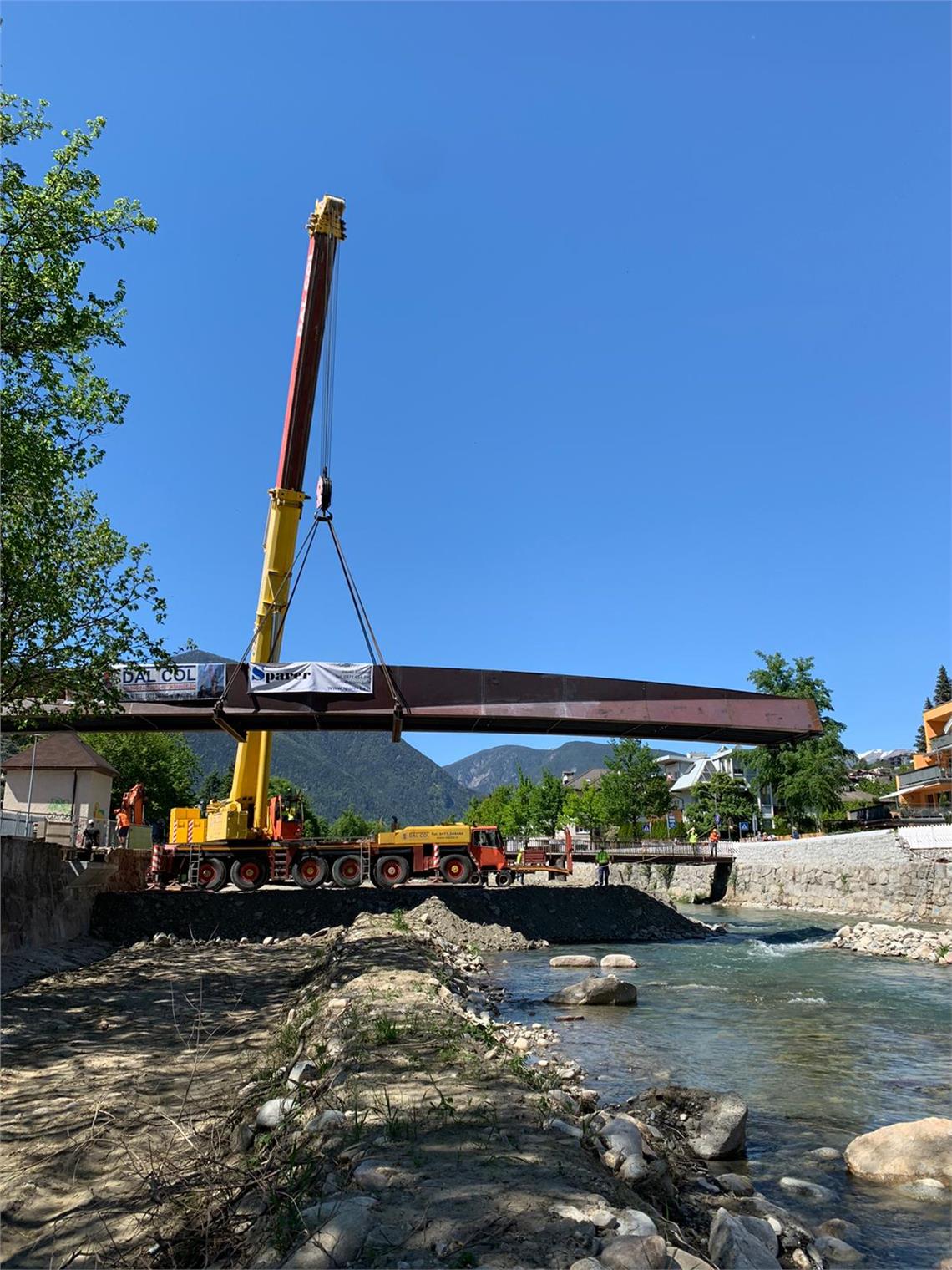 Posata oggi (7 maggio) la nuova passerella ciclopedonale sull'Isarco. I lavori sul fiume serviranno a mettere in sicurezza Bressanone dalle piene.