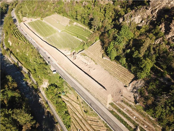Nel corso del suo sopralluogo in val Venosta l’assessore Alfreider ha preso visione anche degli interventi di messa in sicurezza lungo la strada statale. Nei pressi della roggia di Laces, fra i comuni di Laces e Castelbello, sono in fase di avanzata esecuzione i lavori per la realizzazione di valli paramassi. Gli interventi, che saranno completati a breve, si erano resi necessari in seguito alla caduta di massi dai versanti prospicienti la strada statale nel novembre 2019, per il maltempo. Questi lavori sono accompagnati da interventi di ripristino e rinaturalizzazione. Per la Provincia l’investimento complessivo è di 4,2 milioni di euro. Seguiranno nei prossimi anni altre misure di messa in sicurezza. I primi partiranno a breve nell’area sopra il nuovo collegamento della variante ad ovest del castello di Castelbello.