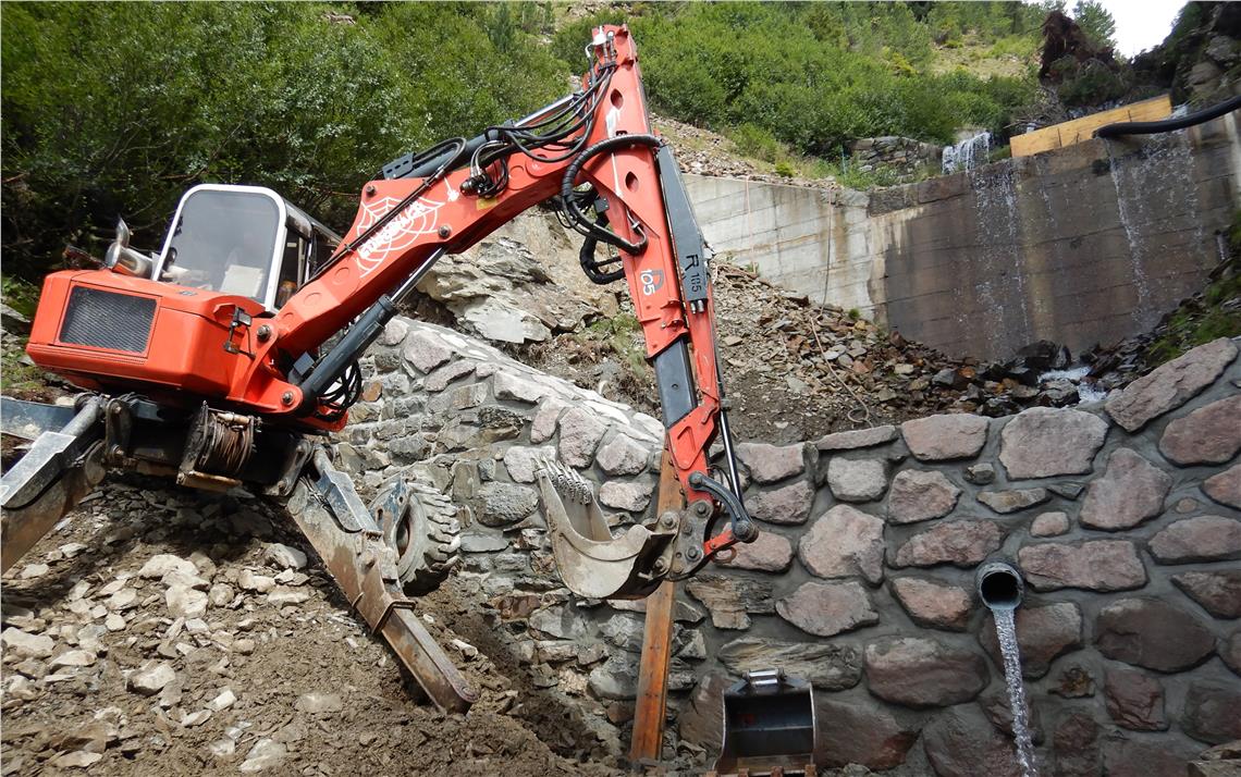 “Quest’estate abbiamo risanato le briglie rimaste. È stato necessario l’impiego dell’elicottero per il trasporto del materiale necessario e molti interventi manuali”, spiega Philipp Walder, progettista e direttore lavori. Nel progetto sono stati investiti 130.000 euro. I lavori sono stati avviati in giugno e hanno comportato l’eliminazione della vegetazione, la ripulitura delle con l’aria compressa delle fughe delle vecchie briglie in muratura mista, e, quindi, la loro sistemazione. In alcuni casi sono si è dovuto provvedere alla ricostruzione di parti crollate.
