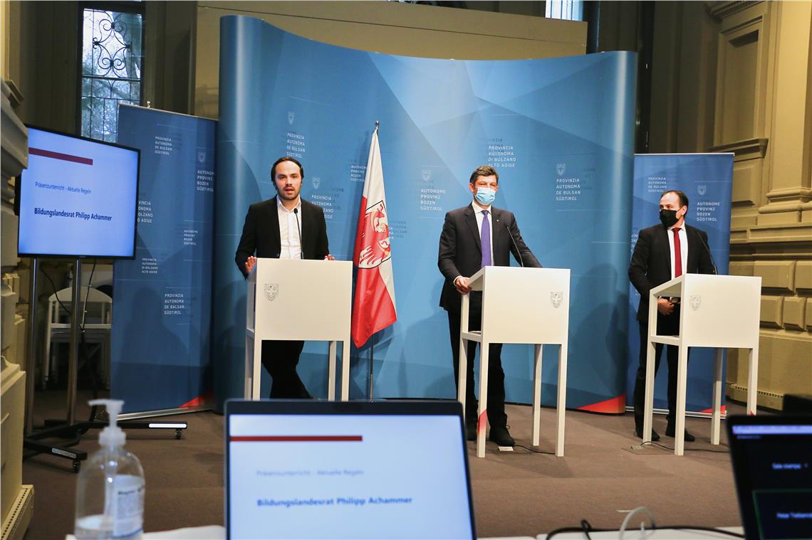 Dal 7 gennaio, in Alto Adige, gli studenti delle scuole superiori torneranno stabilmente a scuola in presenza. Vettorato, Achammer e Alfreider hanno presentato le misure in programma.