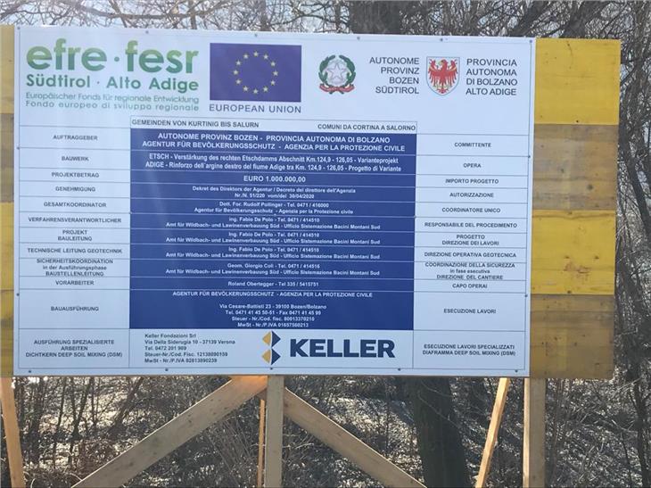 In occasione degli ultimi eventi di piena lungo il fiume Adige ed in particolare durante l'evento dell'anno 2018 in corrispondenza all'argine destro tra Cortina all'Adige e Salorno si sono manifestate delle forti erosioni di sponda che hanno messo in crisi la sicurezza dell'argine stesso, dice il direttore dell'Agenzia per la protezione civile Rudolf Pollinger.