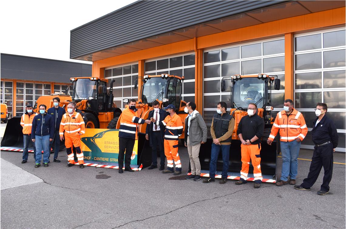 Sono stati consegnati, e sono già pronti per essere utilizzati, i cinque nuovi automezzi del Servizio strade in dotazione ai punti logistici di Bolzano e della Val Venosta. La cerimonia ha avuto luogo alla presenza dell'assessore alla mobilità, Daniel Alfreider, del direttore della Ripartizione Servizio strade, Philipp Sicher, e dei direttori d'ufficio Marco Losso e Stephan Bauer. "Il maltempo e le grandi nevicate dei mesi scorsi - commenta Alfreider - hanno dimostrato una volta di più quanto importante sia avere a disposizione mezzi e attrezzature moderne per poter reagire in maniera efficiente nella situazioni di emergenza". "I nuovi automezzi - aggiunge Sicher - saranno utilizzati in diversi Comprensori: dalla Val Venosta a Salto/Sciliar, dalla Val d'Isarco alla Val Pusteria. Si tratta di un grande sostegno al lavoro quotidiano dei nostri collaboratori che ora potranno svolgere in maniera più efficace i lavori di sgombero e manutenzione delle strade".
