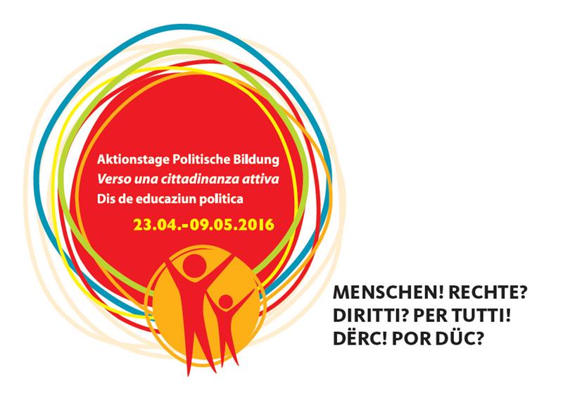Die Aktionstage Politische Bildung 2016 bieten zum neunten Mal die Gelegenheit, in Südtirol auf die politische Bildung aufmerksam zu machen und den Menschen im Sinne des Leitgedankens des Europarates zu „Education for Democratic Citizenship“ die Themen Menschenrechte, Demokratie, Partizipation und aktive Bürgerschaft näher zu bringen.