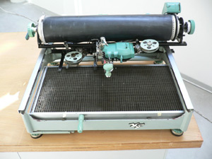 Um auf der Maschine zu schreiben, verschob der Setzer den Arm der Maschine vertikal sowie horizontal und positionierte den Auslegerarm über dem Hämmerchen mit dem ausgewählten Schriftzug. Drückte man den Zug nach unten, so wurde dieses Schriftzeichen aus der Zelle gehoben, auf das Farbband gepresst und somit auf das eingespannte Blatt Papier gedruckt.