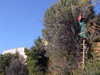 Olivenernte in den Gärten von Schloss Trauttmansdorff