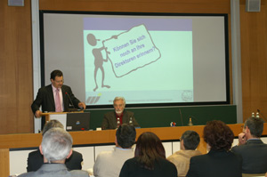Oswald Lechner vom Wirtschaftsforschungsinstitut der Handelskammer präsentierte die Analyse des Berufsleitbilds der Schulführungskräfte aus der Sicht der Wirtschaft. Dabei gab es nach den Worten des Vorsitzenden des Kollegiums der Schulführungskräfte, Georg Mühlberger, "viel Lob vor allem für die ebenso engagierte wie zeitgemäße Vision der beruflichen Rolle einer Schulführungskraft". Die hohe Komplexität der Führungsaufgabe sei mit den Anforderungen des modernen Managements vergleichbar. Lechner plädierte dafür, die „Kundschaft“ – wie er die Schülerinnen und Schüler nennt - und ihre Bedürfnisse entschieden mit in den Blick zu nehmen. Er regte auch an, die Chance zu führen als Kraftquelle wahrzunehmen.