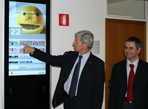 (LPA) Auf ein neues Informationssystem setzt die Landesabteilung land-, forst- und hauswirtschaftliche Berufsbildung. In den Fachschulen für Land- und Hauswirtschaft werden elektronische Info-Säulen aufgestellt, über die die Schüler und das Schulpersonal aber auch Gäste und Kursteilnehmer an alle aktuellen Informationen kommen. Landesrat Hans Berger hat nun die erste Säule in Betrieb genommen.