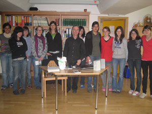 Im Rahmen des Deutschunterrichts hat sich die erste Klasse der Fachschule Frankenberg auf den Besuch vorbereitet. Eifrig recherchierten die Mädchen im Internet und waren sehr neugierig, den Autor persönlich kennen zu lernen. Pete Smith, Sohn einer Spanierin und eines Engländers, wuchs im westfälischen Soest auf. Er studierte an der Universität Münster Germanistik, Philosophie und Publizistik. Seit 1989 lebt er als Schriftsteller und Kulturredakteur in Frankfurt am Main.