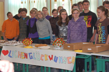 Alle Besucher nahmen an einem Quiz teil, bei dem sie das erworbene Wissen zeigen konnten. Eifrig beantworteten die Mittelschüler die Fragen. Die Klasse 3b der Mittelschule St. Martin in Passeier konnte die besten Ergebnisse aufweisen und erhielt nun als ersten Preis ein Jausenbuffet, das von den Schülerinnen der dritten Klasse der Fachschule Frankenberg vorbereitet wurde. Sow urden die Gewinner mit Brötchen mit Kräuteraufstrichen, Müsliriegeln, Muffins und Waffeln überrascht. Dazu gab es frisch gepressten Apfel-Karottensaft.