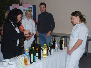 Die Teilnehmerinnen arbeiteten je nach Stärken und Interessen in Projektgruppen und befassten sich thematisch mit den Schwerpunkten: Märchen und Mythen im Zusammenhang mit Fetten; Vorkommen der verschiedenen Fettsäuren in Lebensmitteln; Vielfalt pflanzlicher Fettquellen; Qualitätskriterien von Samen, Nüssen und Ölen vom Einkauf bis zum Genuss. Aufgrund der eigenständig erarbeiteten Themenschwerpunkte und der kritischen Auseinandersetzung mit dem Thema „Fette in Theorie und Praxis“ planten, organisierten und präsentierten die Teilnehmerinnen ein Mittagessen und Informationsstände zum Thema „Machen Fette fit?“. Die einzelnen Gänge des Mittagessens wurden mit besonderen, zum Teil unbekannten Ölen und Samen zubereitet und die Gäste konnten in einem von den Teilnehmerinnen ausgearbeiteten Quiz ihre sensorischen Fähigkeiten unter Beweis stellen.