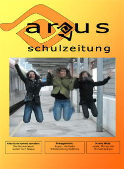 Zweimal pro Schuljahr, jeweils pünktlich zum Elternsprechtag, erscheint die Schülerzeitung "Argus", die nach dem viel-äugigen Ungeheuer aus der griechischen Mythologie benannt ist. Der Name kommt nicht von ungefähr, hält das Redaktionsteam um die Lehrerin Evi Peintner doch die Augen an der Schule offen. So bietet sich die Zeitung als Forum an, um schulinterne Projekte vorzustellen oder über Lehrausgänge und schulische Veranstaltungen zu berichten.
