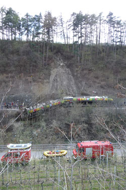 (LPA) Experten des Landeszivilschutzes und der Landesabteilung Wasserschutzbauten, Landesgeologen, Berufsfeuerwehrleute und Vertreter der Südtiroler Transportstrukturen AG (STA) sind derzeit (13. April) am Ort des gestrigen Zugunglücks im Vinschgau im Einsatz, um die am Nachmittag anlaufende Bergung des Zugwracks und die Aufräumarbeiten vorzubereiten.