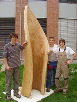 Am Anfang standen ein Projekt, ein Modell und ein Problem. Das Projekt ist jenes der Pausenhofgestaltung, das im letzten Schuljahr aus der Taufe gehoben worden ist und von einer Arbeitsgruppe aus Direktor, Fachlehrern und Schülern vorangetrieben wird. In dieser Arbeitsgruppe entstand die Idee, den Pausenhof mit einer Skulptur zu verschönern, womit wir beim Modell wären. Es ist jenes einer imposanten Skulptur aus Holz, das Elia Salcher, Schüler der Berufsfachschule Holz an der LBS "Zuegg" vor einigen Jahren an der Kunstschule in Gröden gefertigt hat.