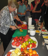 Im Rahmen des Festes wurden - passend zum Thema Gärten - die Mitglieder der Arbeitsgruppe "Paradeis" im Rahmen des gea*Festes mit einer Urkunde geehrt. Anerkannt wurde die Arbeit der an der Fachschule für Hauswirtschaft Haslach gegründeten Gruppe, die sich in den vergangenen Jahren gemeinsam mit Köchen, Köchinnen und Anbauenden um die Aufwertung der Tomate und der verschiedenen Sorten bemüht hat. Eine Tomatenverkostung lieferte anschließend Anschauungsmaterial und Genuss zugleich.