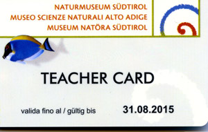 LPA - Für die Lehrer und Lehrerinnen bietet das Südtiroler Naturmuseum Bozen nun eine Lehrerkarte, die so genannte „Teacher Card“ an. Mit der Karte bekommen Lehrerinnen und Lehrer nicht nur freien Eintritt ins Museum, sondern auch nützliche Informationen über Veranstaltungen und didaktische Angebote.