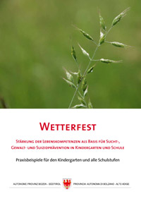 Vor vier Jahren hatte die Landesregierung die Arbeitsgruppe "Lebenskompetenzen stärken" eingesetzt. Ihr Auftrag war es, Vorschläge für eine bessere Vernetzung der Bereiche Sucht-, Gewalt- und Suizidprävention an den Schulen zu formulieren. Fachpersonen von Kindergarten, Schule, Deutschem und Ladinischem Schulamt, dem Psychologischen Dienst und den Sozialdiensten waren in der Arbeitsgruppe vertreten. Unter der Leitung von Theodor Seeber erarbeitete die am Deutschen Schulamt angesiedelte Gruppe eine 380 Seiten starke Mappe mit dem Titel „Wetterfest. Stärkung der Lebenskompetenzen als Basis für Sucht-, Gewalt- und Suizidprävention in Kindergarten und Schule“. Nun kann die Mappe auf der Homepage des Deutschen Schulamtes eingesehen werden. Zudem wurden einige hundert Exemplare gedruckt. Sie werden gezielt verteilt. Einführungsveranstaltungen dazu sind geplant.