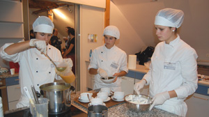 Einige Schülerinnen der dritten Klasse der Fachschule für Hauswirtschaft Frankenberg in Tisens haben gemeinsam mit Austauschschülerinnen der Fachschule Kortsch und Dietenheim das Mittagsbuffet vorbereitet und dabei viele regionale und saisonale Produkte verwendet. Zudem wurde ein Informationsstand eingerichtet, an dem sich die Tagungsgäste über die Fachschule Frankenberg, ihre Aus- und Weiterbildungsangebote und Projekte informieren konnten. Die Arbeitsgruppe wurde von der Fachlehrerin Renate Kofler betreut. Direktorin Mechthild von Spinn freute sich über die gelungene Zusammenarbeit zwischen den Schulen.