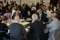 Am Vortag hatten Schuldirektoren, Inspektoren und Schulentwicklungsberater bereits darüber nachgedacht, welche Voraussetzungen gegeben sein müssen, damit die so genannte mittlere Führungsebene bestehend aus Vizedirektoren, Koordinatoren, Schulstellen-, Fachgruppenleitenden usw. möglichst wirksam Schulentwicklungsprozesse mittragen kann. Neben verschiedensten Vorschlägen von angemessener Fortbildung bis hin zu notwendigen Anpassungen der Arbeitskollektivverträge, trat ein Anliegen besonders deutlich hervor: Der Arbeit an und in der mittleren Führung von Bildungsinstitutionen muss in vielerlei Hinsicht mehr Wertschätzung zukommen. Dabei, so der Tenor in den Ergebnissen der Gruppenarbeiten, gehe es auch, aber nicht nur um finanzielle Anreize. Vielmehr würden sich aus der Führungsmitarbeit in Schulen bislang kaum Vorteile für die persönliche Karriereentwicklung ergeben.