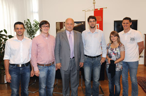Eine zukunftsgerichtete Ausbildung, eine Begrenzung der Jugendarbeitslosigkeit und sichere Arbeitsplätze - das sind drei Anliegen, für die sich der Südtiroler Jugendring stark machen will. SJR-Vorsitzender Igor Guizzardi, Stellvertreter Kevin Hofer und die Vorstandsmitglieder Tobias Karbon, Marina Fornaro und Lukas Nothdurfter unterbreiteten sie heute bei ihrem Antrittsbesuch dem Landeshauptmann.