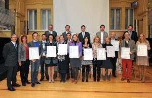 LPA - Zwölf familienbewusste Unternehmen haben 2011 das "audit familieundberuf" erfolgreich abgeschlossen. Am heutigen Mittwoch, 23. November, wurde ihnen von den Landesräten Thomas Widmann und Roberto Bizzo sowie von Handelskammerpräsident Michl Ebner und Regionalassessorin Martha Stocker das Zertifikat "audit familieundberuf" überreicht.