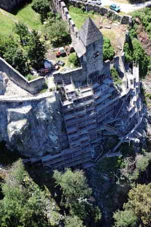 Unter der Leitung des Landesamtes für Wildbach- und Lawinenverbauung Nord wurden Zuganker von sechs bis zwölf Meter Länge sowie spezielle Netze mittels Vernagelung und Verbindungsträger am Fels angebracht, um diesen zu stabilisieren. „Zudem wurde der instabile Teil des Felsens mit Spritzbeton versiegelt, um einen größeren Schutz im Falle von Regen oder Gefrieren zu gewährleisten“, erklärt Paul von Hepperger, Direktor des Landesamtes für Wildbach- und Lawinenverbauung Nord, der für die Projektierung und Bauleitung verantwortlich zeichnet. Weiters wurde der gesamte Hang saniert und von Gras und Büschen befreit, die ebenfalls die Stabilität gefährdeten.