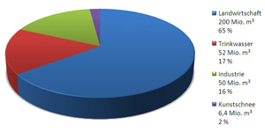 Die Landwirtschaft in Südtirol benötigt jährlich an die 200 Millionen Kubikmeter Wasser. Laut Wassernutzungsplan wird dieser Bedarf in den nächsten Jahren weiter zunehmen, da noch mehr Wasser für die Bewässerung benötigt wird. Der Wasserbedarf für die Industrie wird hingegen relativ konstant bleiben. Der Wasserbedarf für Trinkwasser wird, aufgrund des steigenden Lebensstandards, weiter zunehmen. Wegen des Klimawandels wird zudem für die Kunstschneeerzeugung mehr Wasser benötigt werden. In Südtirol beträgt die bewässerte landwirtschaftliche Fläche ungefähr 56.000 Hektar. Dafür werden jährlich, im Zeitraum zwischen April und Oktober durchschnittlich 170 Millionen Kubikmeter Wasser benötigt. Weitere 30 Millionen Kubikmeter Wasser werden für die Frostberegnung benötigt, die im Mittel für sieben Nächte im Jahr und zehn Stunden im Einsatz ist.