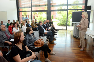 "Leider", bedauerte Kulturessortleiterin Karin Dalla Torre, "ist die Weiterbildung als vierte Säule des Bildungssystems noch nicht so etabliert, wie sie es sich verdienen würde – vor allem auf dem Hintergrund des Postulats des lebenslangen oder lebensbegleitenden Lernens." Gemeinsam mit Landesamtsleiter Hubert Bertoluzza hat sie den Grundgedanken des Weiterbildungsgesetzes von 1982 und die Auswirkungen auf das System vorgestellt, im Beisein des Präsidenten der Eurac Werner Stuflesser, des Verlegers und Initiators Aldo Mazza, der Herausgeber Hans Karl Peterlini und Martin Peer sowie zahlreicher Vertreterinnen und Vertreters des Südtiroler Weiterbildungsbreichs.