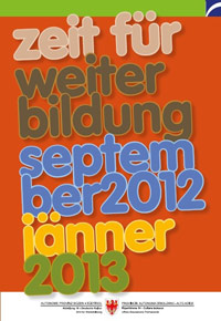 Die Kursbroschüre "zeit für weiterbildung" erscheint nun schon seit vielen Jahren jeweils im Jänner und im August und informiert über einen Großteil der Weiterbildungsangebote in Südtirol. Ab 20. August ist die bunte Herbstausgabe 2012 im Umlauf und kann in verschiedenen Landesämtern, Bibliotheken, Raiffeisenkassen und Bildungseinrichtungen abgeholt werden.