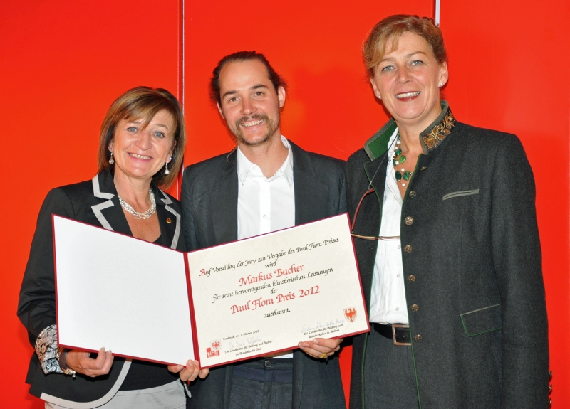 "Markus Bacher", führte Landesrätin Kasslatter Mur aus, "ist ein sehr talentierter junger Künstler, der mit seinem Werk weit über die Grenzen Tirols hinaus Beachtung und Anerkennung findet und dessen Bilder sich mittlerweile weltweit verkaufen." In den vergangenen Jahren war sein Werk nicht nur in mehreren Einzel- und Gruppenausstellungen zu sehen, sondern der Künstler wurde auch bereits mehrfach mit Künstlerstipendien bedacht.