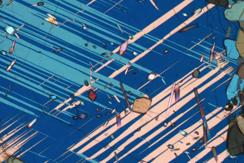 Der Geologe und mehrfach ausgezeichnete Fotograf Bernardo Cesare zeigt mit einfachen Mitteln das farbige Innenleben von ganz gewöhnlichen Steinen. Zuerst werden die Steine in dünne Scheiben geschnitten, auf einen Objektträger geklebt und auf 0,03 Millimeter herunter geschliffen. Diese nun durchsichtigen Dünnschliffe sind ein gängiges Untersuchungsobjekt der Geologen. Nun können die Bilder mit einer digitalen Spiegelreflexkamera in Verbindung mit einem Durchlicht-Polarisationsmikroskop unter gekreuzten Polarisatoren aufgenommen werden. Bei dieser Technik müssen die Bilder nicht nachbearbeitet werden, weder während noch nach der Aufnahme. Das bunte Farbenspiel entsteht allein durch die Interferenz im Kristall des polarisierten Lichts und durch die Verwendung spezieller Kompensator-Filter, die eine festgelegte Verschiebung der Wellenlängen des durchgelassenen Lichts verursachen.