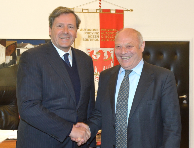 Seit knapp eineinhalb Jahren ist der 60-jährige Alain De Roy Vertreter seines Landes in Italien. Der ehemalige französische Präsident Nicolas Sarkozy hatte ihn Ende 2011 zum französischen Botschafter in Rom ernannt. Seinen Dienst im Palazzo Farnese trat er zu Beginn des Jahres 2012 an. Am heutigen Vormittag stattete Le Roy Landeshauptmann Luis Durnwalder einen Besuch ab.