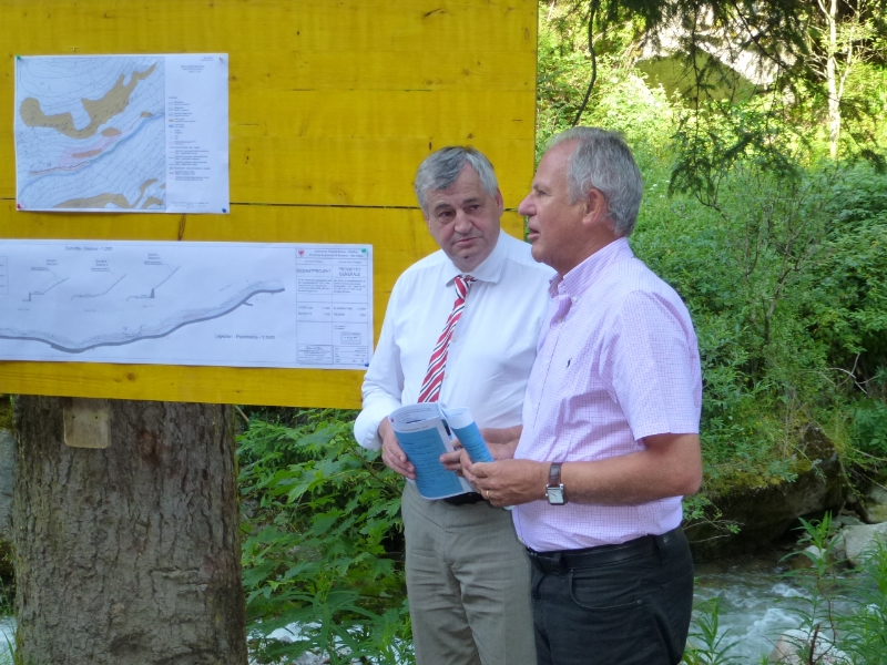 Projektsteurer Egon Engl vom Landesamt für Geologie und Baustoffprüfung informierte den Landesrat im Detail über die Durchführung der Schutzmaßnahme: Die Arbeiten wurden im vergangenen Jahr 2012 aufgenommen und werden in insgesamt drei Baulosen durchgeführt, von denen das zweite nun abgeschlossen wurde. Die Arbeiten am dritten Baulos sollen bereits im kommenden Frühjahr beendet sein. Die Gesamtkosten werden sich bis dahin auf 810.000 Euro belaufen.