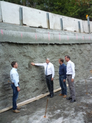 LPA - Gleich an zwei Stellen laufen derzeit auf der Landesstraße von Lajen nach St. Peter Sicherungs-und Sanierungsarbeiten, weil die Straße dort abgerutscht war. Bautenlandesrat Florian Mussner hat sich Anfang dieser Woche mit dem Lajener Bürgermeister Stefan Leiter, seinem Vize Martin Vikoler und Gemeindereferent Armin Kerschbaumer ein Bild vom Fortschreiten der Arbeiten gemacht. „Trotz der schwierigen Bedingungen werden die Arbeiten innerhalb Oktober beendet“, kündigte Mussner an.